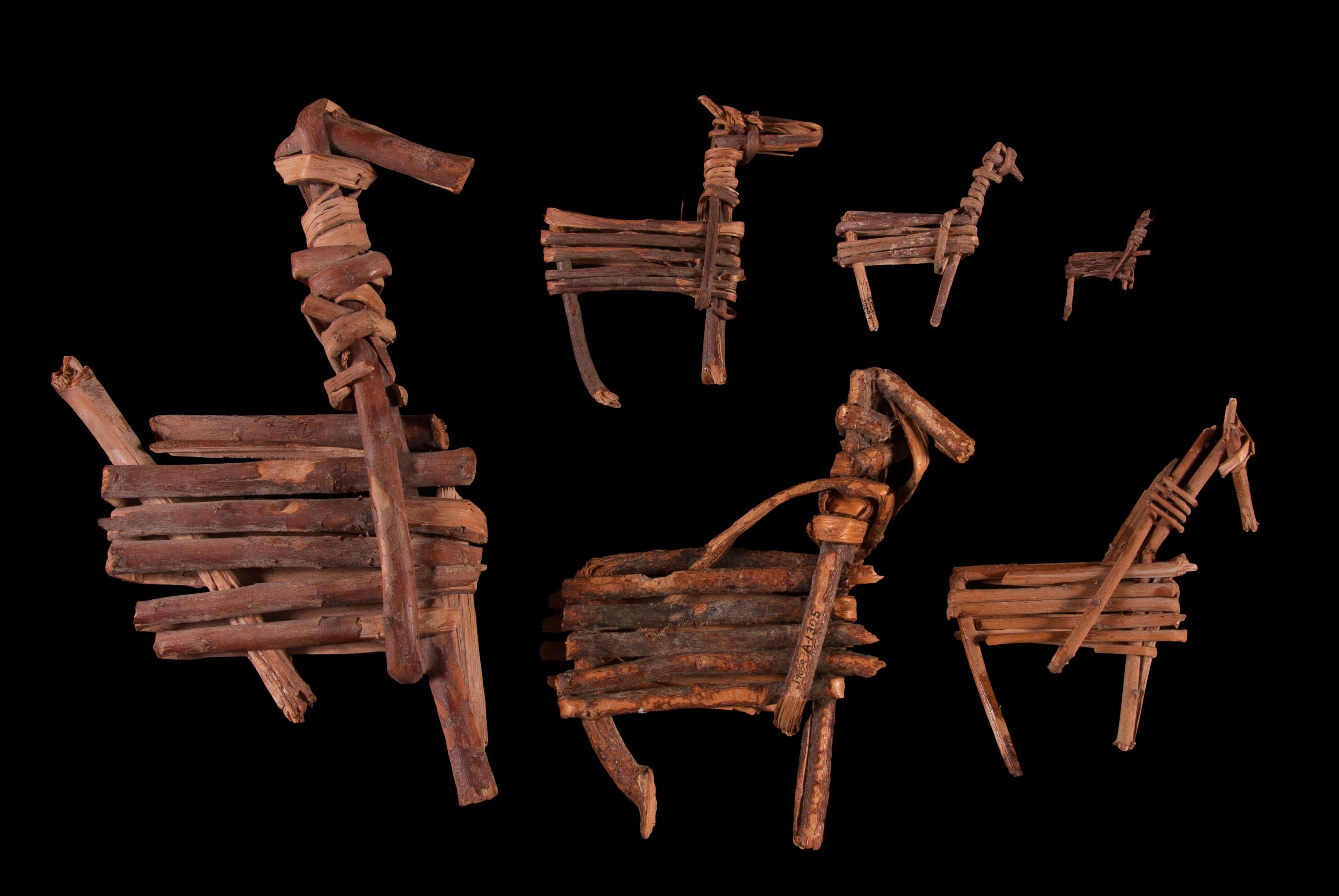 Split-twig figurines. These figurines were made using split willow twigs carefully wrapped to depict sheep, deer, and other game animals.